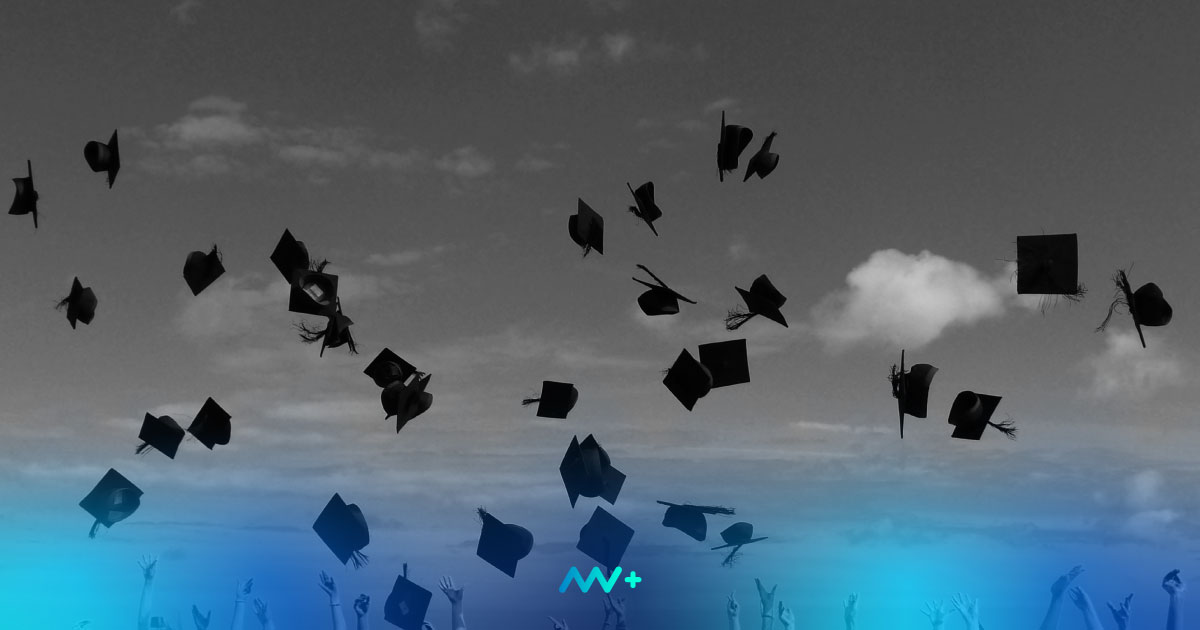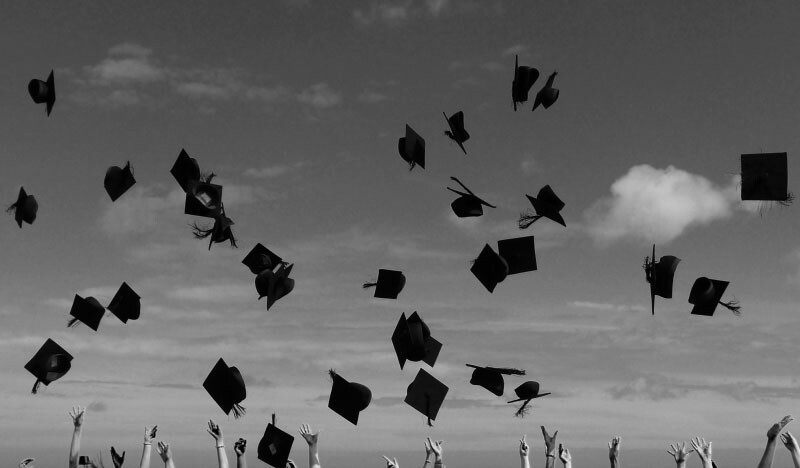 University graduation ceremony, caps flying in the air. | Photo credit: Stock
