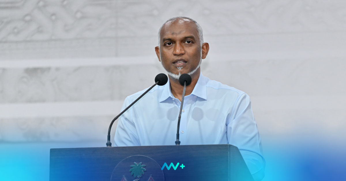 President Dr Mohamed Muizzu speaking to the residents of Muli, Meemu Atoll, on September 22, 2025 | Photo: President’s Office