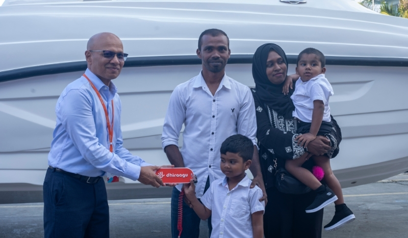 Dhiraagu has handed over the first speedboat awarded under its ‘Win 2 Speedboats’ promotion, with the ceremony held yesterday at the Thilafushi Boatyard.