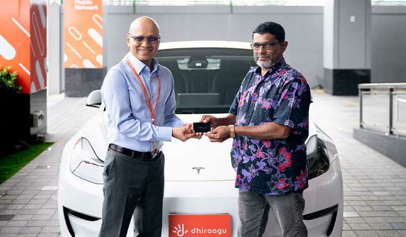 Dhiraagu Hands Over the Tesla Car to the Lucky Winner of the ‘Win A Tesla’ Promotion