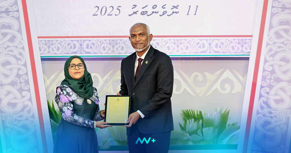 In a ceremony held yesterday to commemorate Republic Day, President Dr Mohamed Muizzu presented Dr Zahir with a commemorative plaque in recognition of her milestone achievement. Her research focuses on strategies to advance and enrich the Dhivehi language.