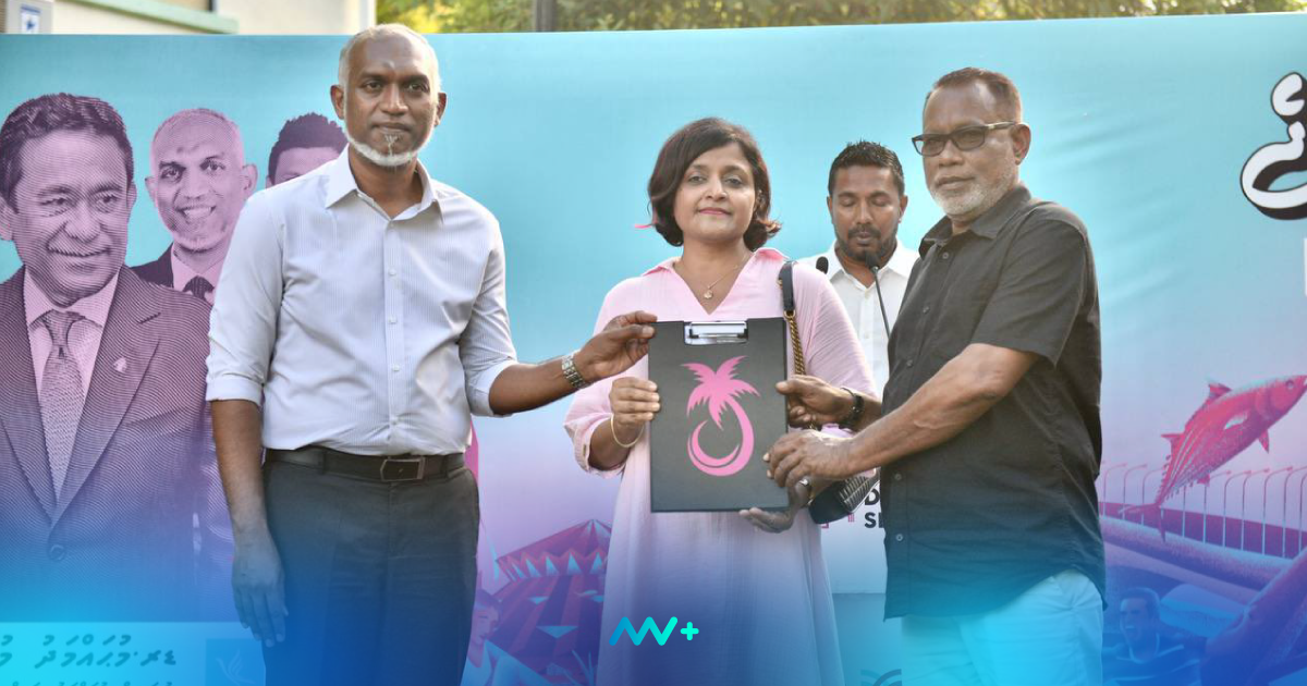 The PNC Presidential Candidate, Dr. Mohammed Muizzu, and PNC President Abdul Raheem Abdullah were present to receive her application.