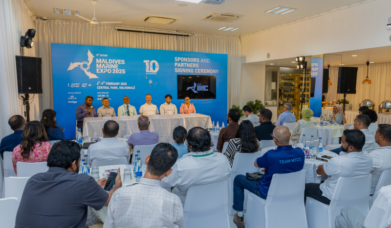 The Maldives Marine Expo 2025, the 10th edition of the country’s largest marine industry event, officially began preparations with the sponsors and partners signing ceremony at the Manhattan Business Hotel yesterday.