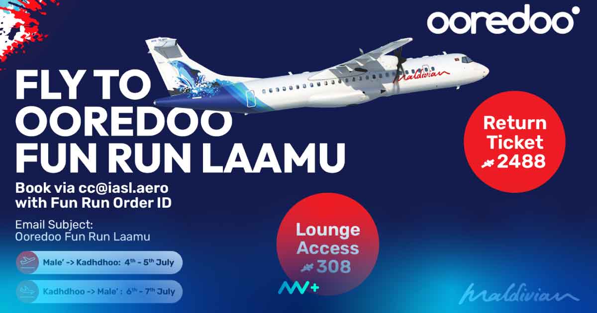 This offer provides a special return airfare of MVR 2488 for MLE-KDO route for participants registered for the Ooredoo Fun Run in Laamu, supporting more people to join in on the fun.