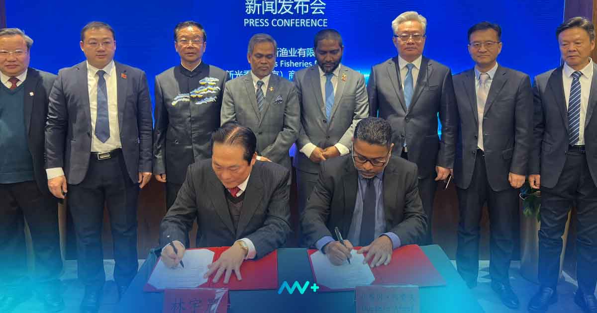 The signing ceremony took place in Beijing, attended by Maldivian Ambassador to China Dr. Fazeel Najeeb and State Minister for Fisheries and Ocean Resources Dr. Amzath Ahmed. The agreement was signed by Ensis Fisheries’ General Manager Husain Afeef and Xinguang Show Beijing Commercial Management’s Chairman.
