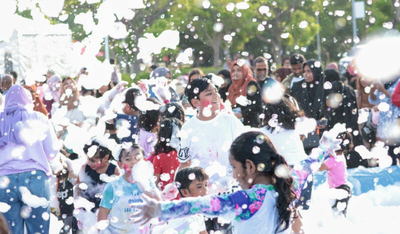 Children play in the foam party at the ‘Ufaa Festival’. | Photo credit: Ministry of Social and Family Development