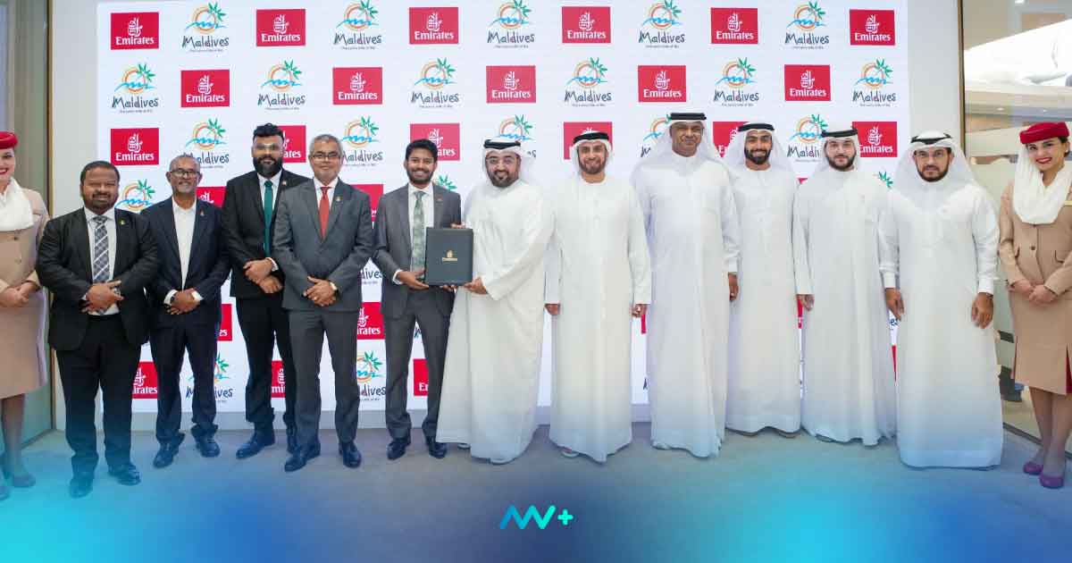 The Memorandum of Understanding (MoU) was signed at the Arabian Travel Market 2025 in Dubai by Ibrahim Shiuree, CEO and Managing Director of MMPRC, and Essa Sulaiman Ahmad, Emirates’ Senior Vice President for Commercial Operations, West Asia and Indian Ocean. The signing was witnessed by the Minister of Tourism and Environment Thoriq Ibrahim.