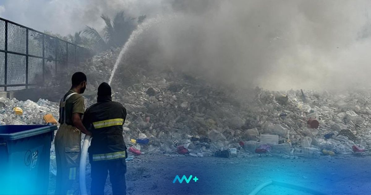 Earlier in the day, MNDF personnel put out another fire at the Waste Management Corporation (WAMCO) site in Meedhoo, where plastic bottles had caught fire. The incident was reported at 10:39am, and firefighters from the Hulhumeedhoo Fire Station attended the scene. They extinguished the fire by around 12:08pm.