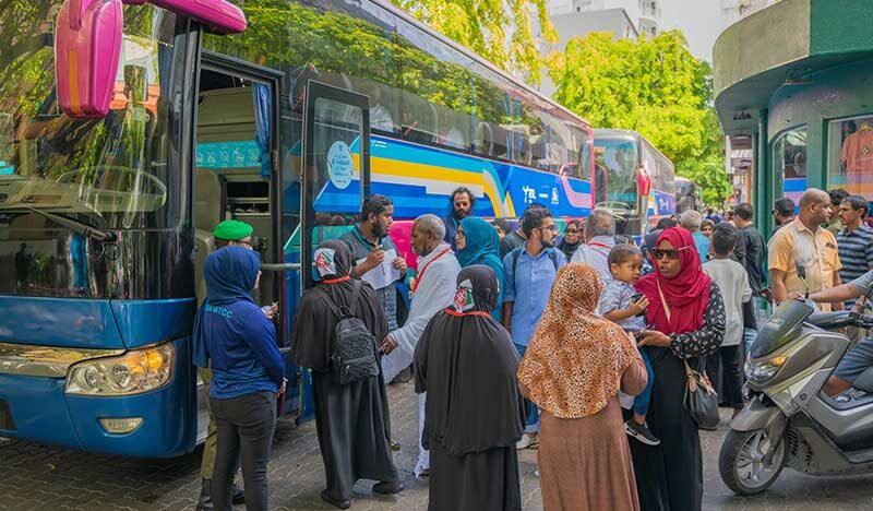 In a commendable initiative, the Maldives Transport and Contracting Company (MTCC) has provided transportation services for a total of 1,211 individuals, comprising Hajj pilgrims and their accompanying family members. The company’s efforts involved the deployment of 10 buses across two routes in Malé, and an additional 9 buses operating on two routes in Hulhumalé.