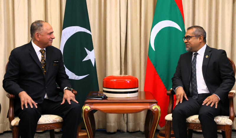 During the meeting held at the Ministry of Foreign Affairs this morning, Minister Dr. Khaleel welcomed the High Commissioner and congratulated him on his appointment and discussed ways to further strengthen and diversify the brotherly relations that exist between the Maldives and Pakistan.