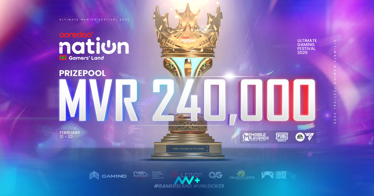 The Ooredoo Nation Contender Series offers a MVR 50,000 prize for the champion, while the second-place winner will receive MVR 20,000. The third and fourth-place winners will receive MVR 15,000 and MVR 10,000, respectively. The winners of the MLBB and EAFC tournaments will each receive MVR 20,000, with the second and third-place winners taking home MVR 15,000 and MVR 10,000. The MVPs of the three tournaments will also receive MVR 5,000 each.