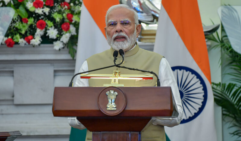 Prime Minister of India, Narendera Modi, speaking at the ceremony held on October 7, 2024, to exchange agreements, MoUs and Notes during President Dr Mohamed Muizzu’s State Visit to India | Photo: President’s Office