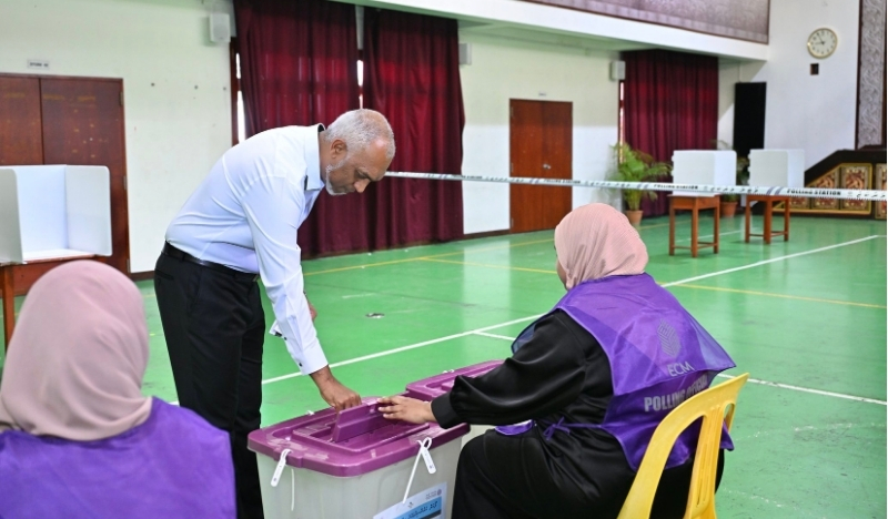 Voting is currently underway across the Maldives, with the public casting ballots in three separate votes: the Local Council Election, the Women’s Development Committee (WDC) Election, and a public referendum seeking views on aligning the dates of parliamentary and presidential elections.
