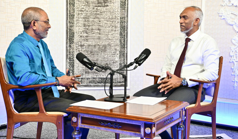 President Dr Mohamed Muizzu (L) during the fourth episode Rayyithunaa Eku podcast posted on April 17, 2025 | Photo:President’s Office