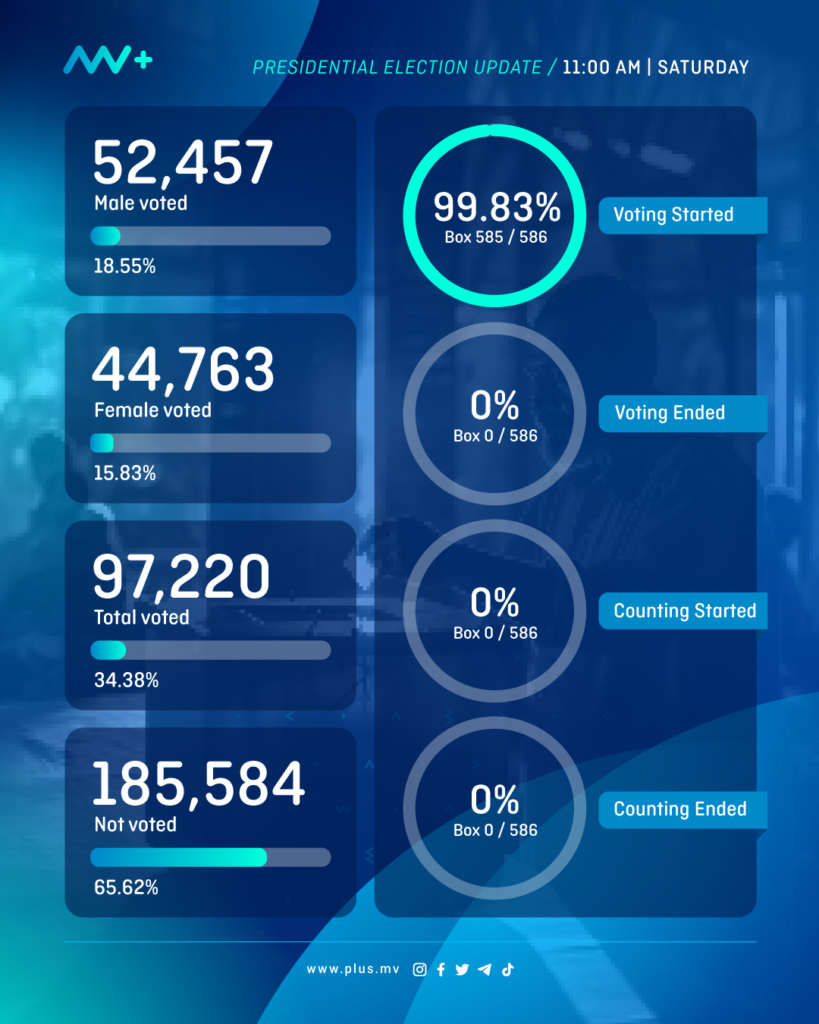 As of 11AM today, Election Commission of Maldives (ECM) reported that 97,220 people have already voted, which amounts to 34.38% of eligible voters.