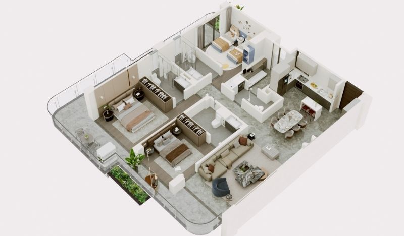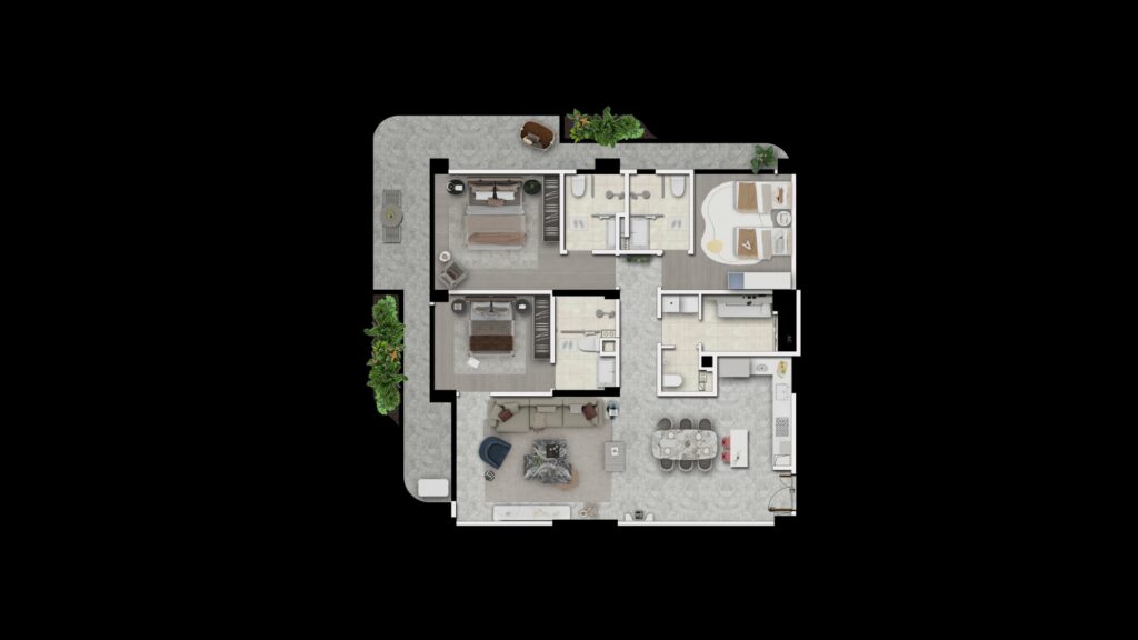 One of the defining strengths of Bayfancy Residence layouts is the clarity of zoning. Each apartment is thoughtfully divided into distinct areas for living, resting, and service, ensuring that daily life flows without conflict. The social spaces, including living, dining, and kitchen, form a connected core where interaction feels natural and effortless, while private areas such as bedrooms are positioned away from this activity, offering calm, comfort, and true privacy.