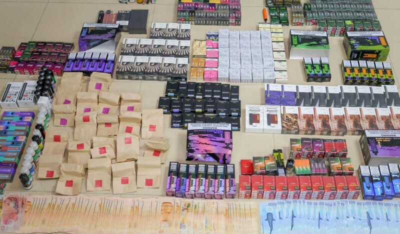 Officers also recovered vapes, suspected drugs, MVR 111,880 in cash, and other contraband from a motorcycle and an apartment linked to the suspects.