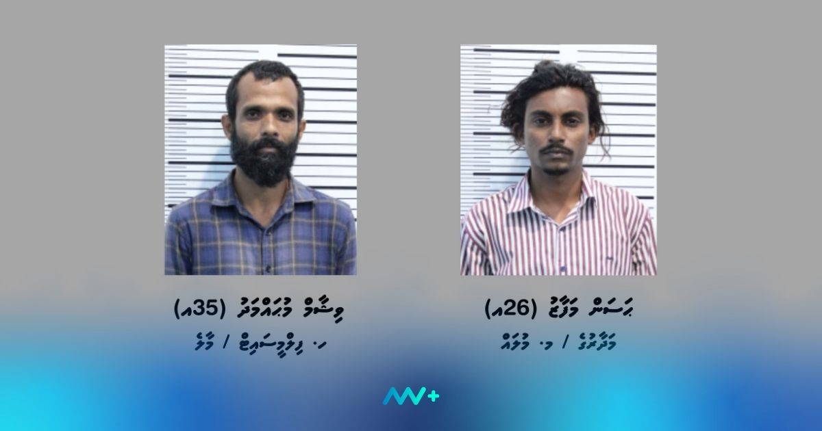 Police confirmed on Sunday that two suspects were arrested after the drugs were handed over by Customs. The men have been identified as Visham Mohamed, 35, of Malé, and Hassan Mafaz, 26, of M. Muli. The arrests were made during an operation launched as part of the investigation into the smuggling attempt.