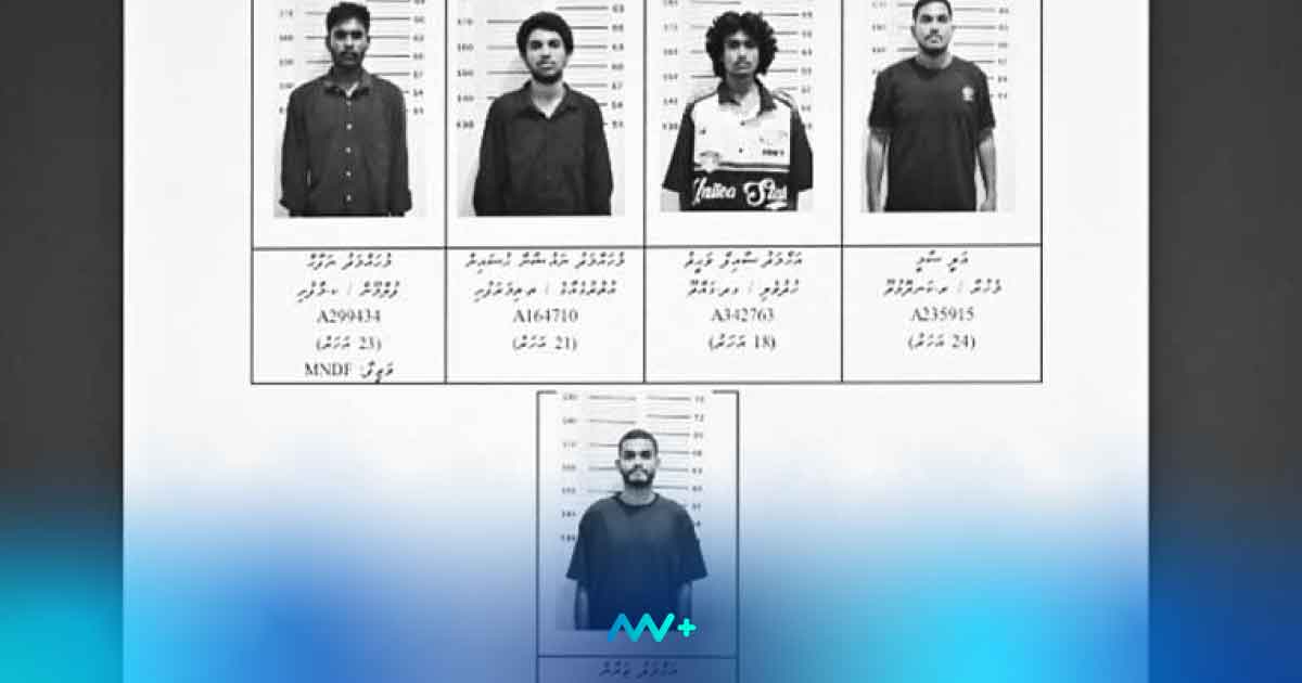 Of these suspects, Mohamed Nafaah and Ahmed Zayan are MNDF officers, while the other three have prior records related to drug offences. The Criminal Court has remanded Nafaah in custody until the investigation is concluded, while the remaining four will remain in custody until the end of their trial.