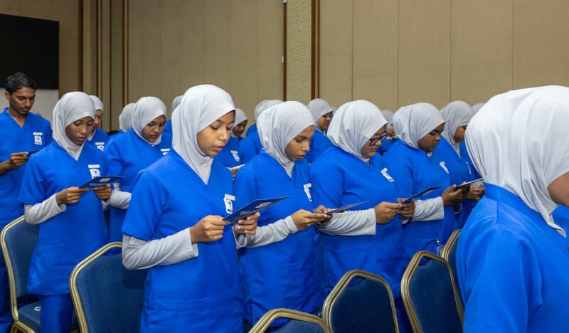 A highlight of the event was the oath-taking of 98 students enrolled in the Certificate IV in Nursing programme. The oath was administered by Brigadier General Dr. Ali Shahid, President of the Maldives Medical and Dental Council, reinforcing the students’ pledge to deliver care with integrity and uphold the highest ethical standards throughout their careers.