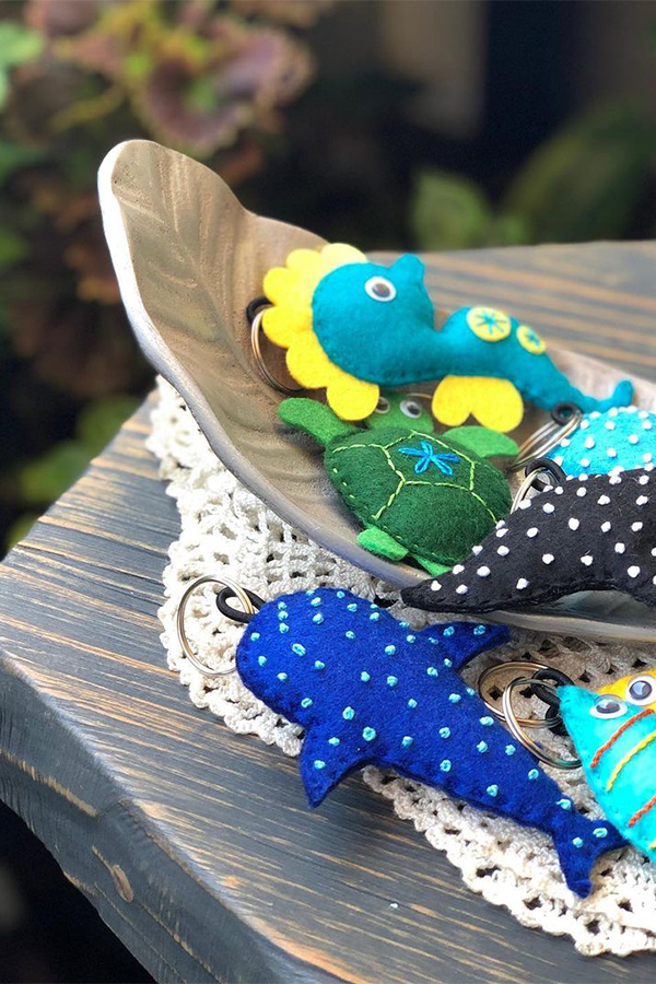 Pepper Dots products are packed with designs of manta rays, seahorses, lobsters, turtles, sharks, and many other sea creatures that live in our oceans. By taking these sea creatures as inspiration, they create key tags, pillows, pouches, and pillows by hand.