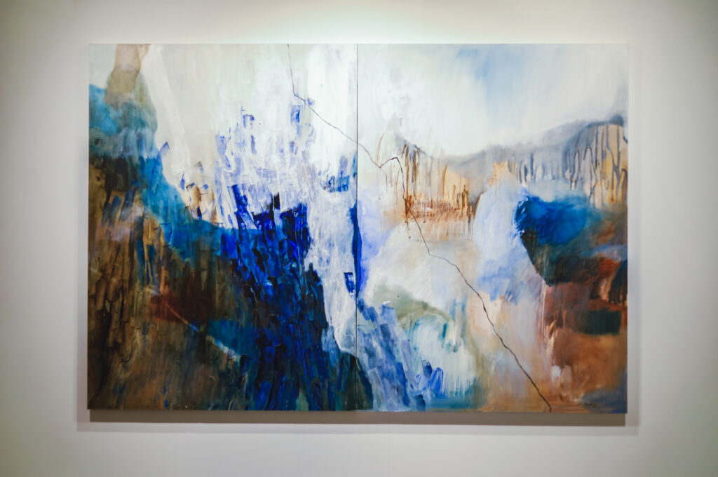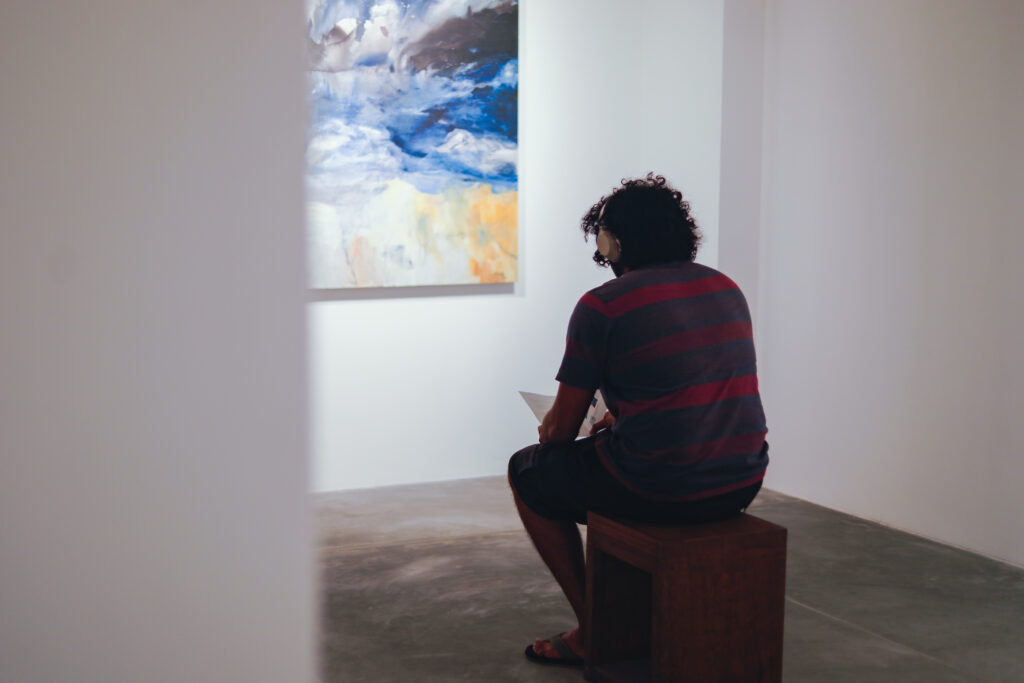 Throughout the exhibition, Huda’s approach encourages a slower form of looking. The works ask viewers to pause and to feel, without urgency or the need for definitive understanding. As the artist herself notes, the intention is to invite the viewer to look into the painting rather than at it — to wander beyond the surface, alongside the paint and brush marks, and to spend time without the pressure of conclusion.