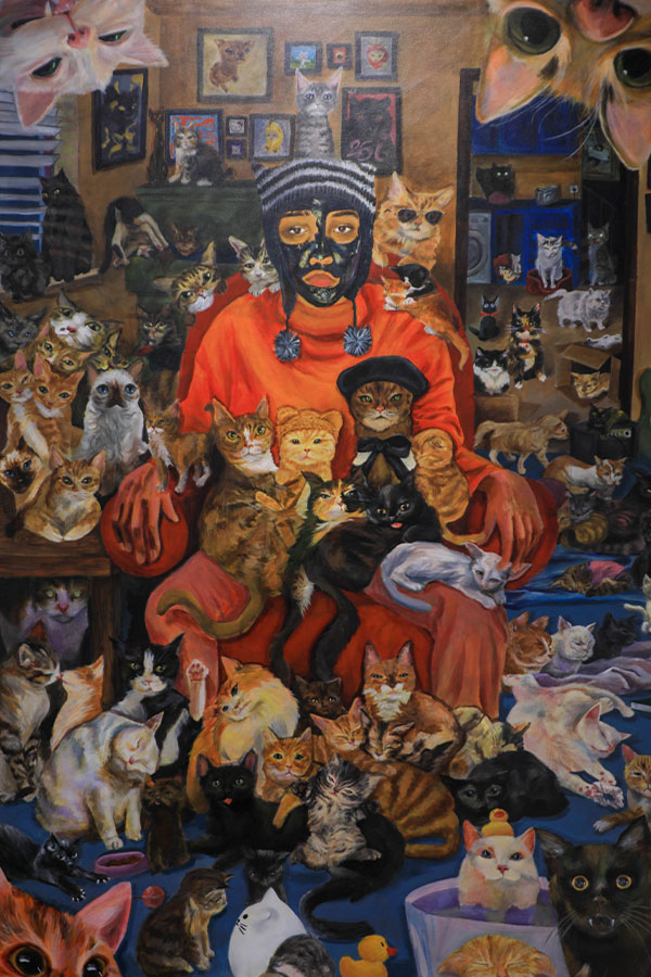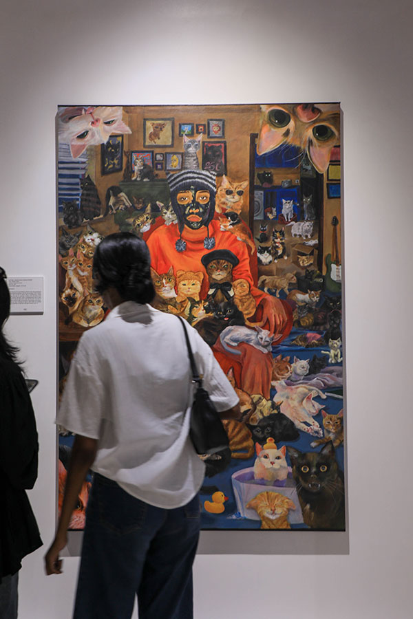 The artwork that stole the show at the exhibition features intricately detailed cats surrounding a person, which Munya revealed to be a sort of self-portrait. For her submitted painting, Munya used acrylics as her medium.