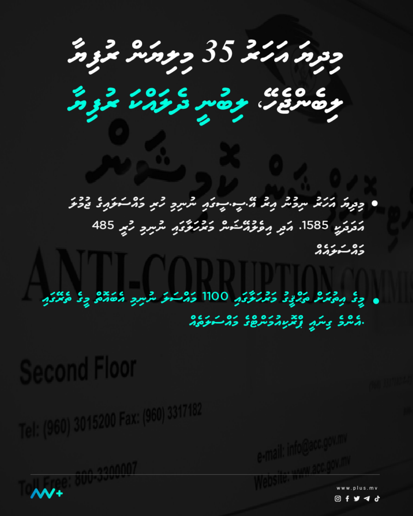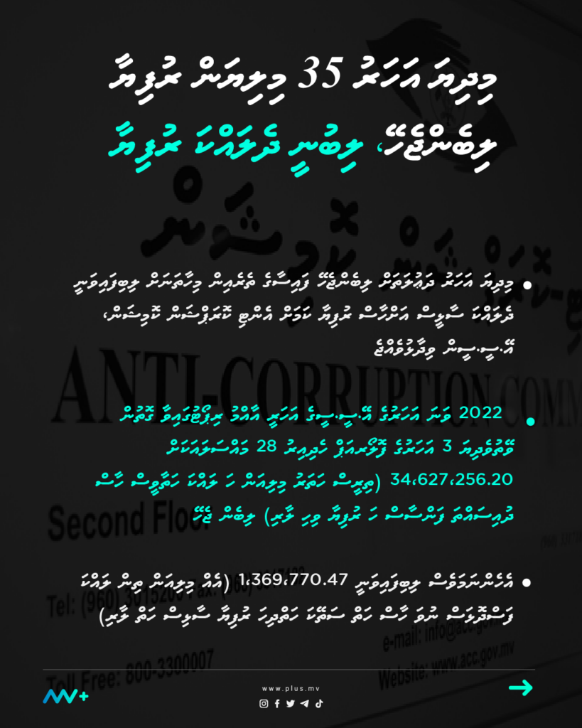 މިދިޔަ އަހަރު ދަޢުލަތަށް ލިބެންޖެހޭ ފައިސާގެ ތެރެއިން މިހާތަނަށް ލިބިފައިވަނީ ދެލައްކަ ސާޅީސް އަށްހާސް ރުފިޔާ ކަމަށް އެންޓި ކޮރަޕްޝަން ކޮމިޝަން، އޭ.ސީ.ސީން ވިދާޅުވެއްޖެ