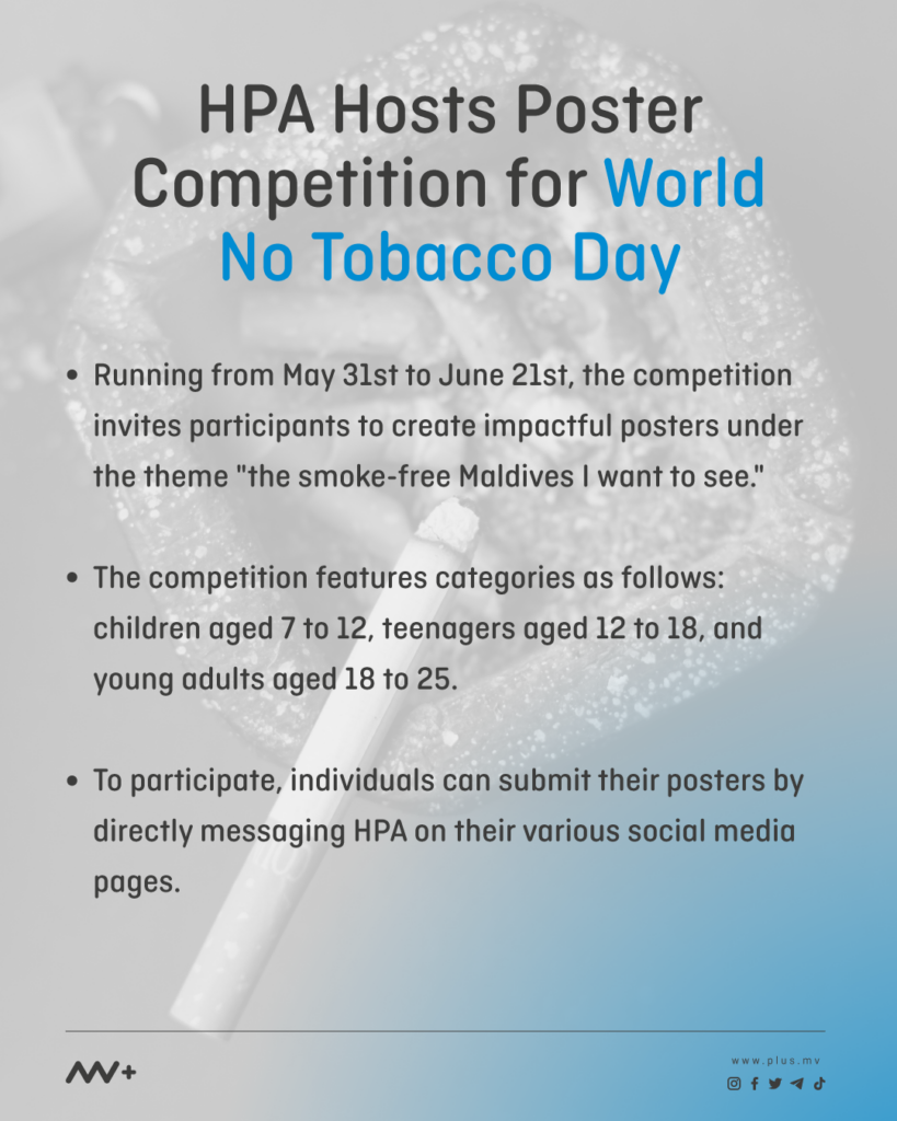 In a bid to advocate for a smoke-free future, the Health Protection Agency (HPA) of Maldives has organised a poster competition on the occasion of World No Tobacco Day.