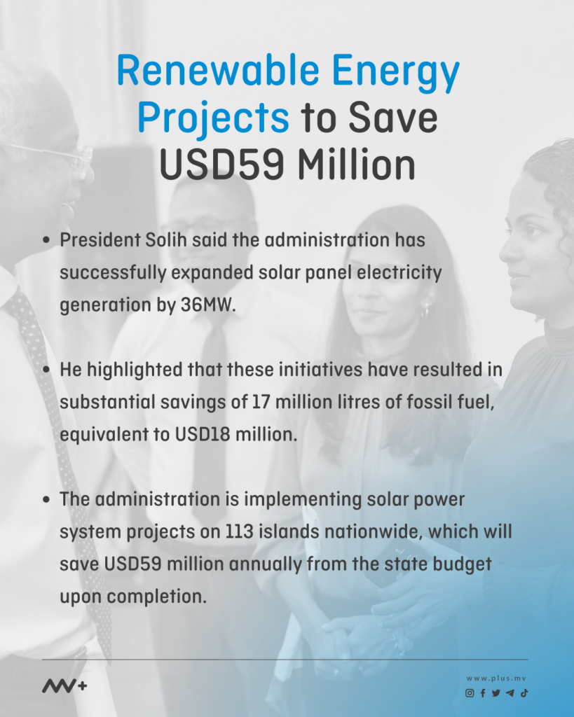 President Ibrahim Mohamed Solih has revealed that the administration’s initiative to expand renewable energy power generation will save around USD59 million every year.