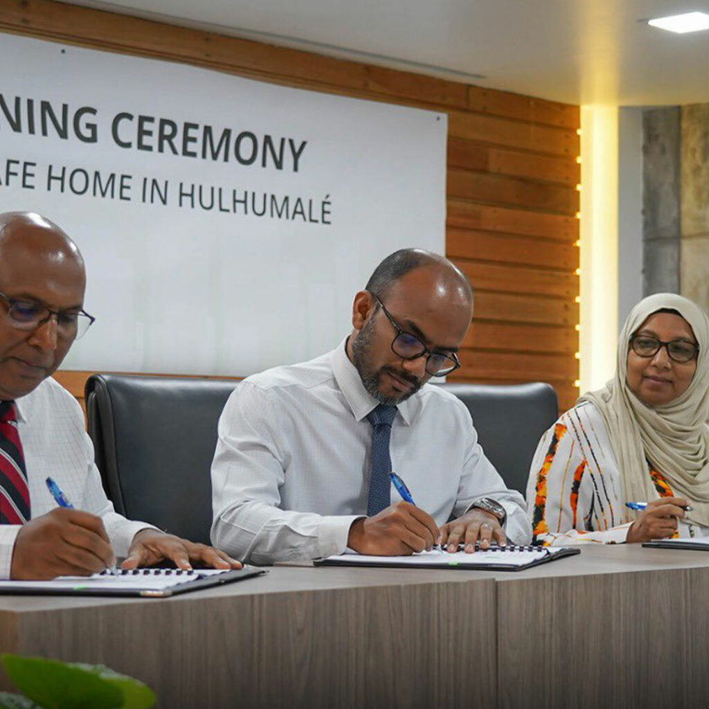 މިނިސްޓްރީ އޮފް ޖެންޑަރ، ފެމިލީ އެންޑް ސޯޝަލް ސަރވިސަސްއިން ހުޅުމާލޭގައި ޤާއިމްކުރާ ޑޮމެސްޓިވް ވަޔެލެންސް (ޑީވީ) ޝެލްޓަރގެ ބިމުގެ ޕަރޗޭސް އެގްރީމަންޓުގައި މިއަދު ސޮއިކޮށްފިއެވެ.