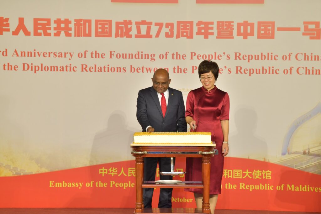 ރައީސުލްޖުމްހޫރިއްޔާ މިހެން ވިދާޅުވީ ދިވެހިރާއްޖެއާ ޗައިނާއިން ސިޔާސީ ގުޅުން ޤާއިމްކުރިތާ 50 އަހަރު ފުރުމުގެ މުނާޞަބާ ފާހަގަކުރުމާއި ޕީޕަލްސް ރިޕަބްލިކް އޮފް ޗައިނާ އުފެދުނުތާ 73 އަހަރު ފުރޭ މުނާޞަބާ ފާހަގަކުރުމަށް ދަރުބާރުގޭގައި ބޭއްވެވި ރަސްމިއްޔާތުގައި ވާހަކަފުޅު ދައްކަވަމުންނެވެ.