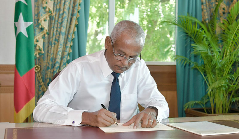 ދިވެހި ފުލުހުންގެ ޚިދުމަތުގެ ޤާނޫނު )ޤާނޫނު ނަންބަރު 2020/34 ( އަށް 1 ވަނަ އިސްލާޙު ގެނައުމުގެ ބިލު ރައީސުލްޖުމްހޫރިއްޔާ އިބްރާހީމް މުޙައްމަދު ޞާލިޙް އިއްޔެ ތަސްދީޤު ކުރައްވައިފިއެވެ.