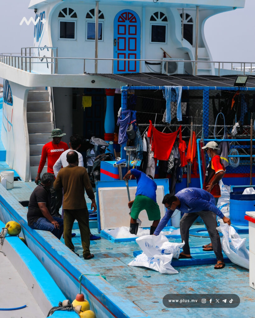 Talking to MV+, some fishermen called for the immediate release of the expatriates arrested during the protest, as well as on President Muizzu to follow through with his pledges. | Photo: MV+Fishermen loading ice into their vessel docked at the Hulhumale Kanneli Jetty. Establishment of adequate ice-plant facilities is one of the core demands of the fishermen partaking in the BKMU protests. | Photo: MV+ Photo: MV+